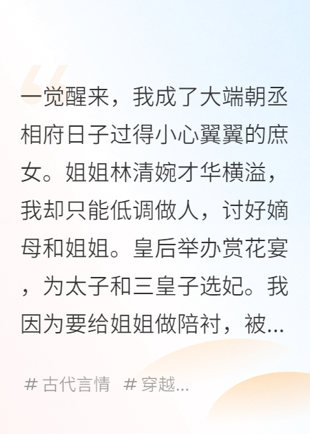 [11-09 17:44] 热门小说开局被献祭我反手背刺主角团:小说(新婚夜和离,我随家人流放去岭南,) 最终篇章+番外(沈颂宜江逐流) 男女重点人物分别是【沈颂宜江逐流】的宫斗宅斗,古代言情,重生,空间,腹黑,医术小说《开局被献祭我反手背刺主角团:小说(又名:新婚夜和离,我随家人流放去岭南,)》,由实力作家“小趴菜鸭鸭”创作,故事情节紧凑,引人入胜,本站无广告干扰,欢迎阅读!本书共计135987字,116章节,更新日期为2025-11-05。该作品目前在本网 【yuzhiu.com】上连载中。小说详情介绍:冷静果断女主VS体弱腹黑男主前世沈颂宜新婚夜,沈家被奸人陷害入狱,后皇帝开恩,举家流放岭南。祸不及出嫁女,然江家害怕被皇帝迁怒,沈氏女于一年后病逝。再次睁眼,她回到新婚夜,才明白自己一家只是男女主情节发展的垫脚石。这次她不会放任家人在流放路上受苦。江家这种虚情假意的姻亲他们沈家高攀不起。新婚夜她与江家决绝,带人搬回嫁妆,一路护送家人平安抵达岭南。