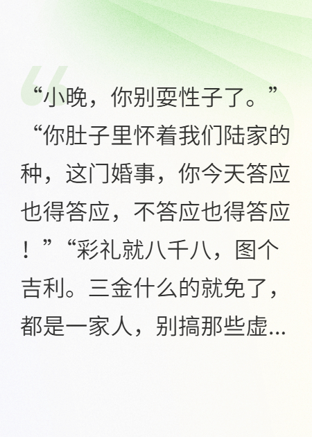 疯批暴躁兔-著 查看男女重点人物分别是【沈晚陆兆阳】的女生生活,大女主,逆袭,婚恋,重生小说《重回到25岁奉子成婚那天,这门婚事我不同意》,由实力作家“用户12467546”创作,故事情节紧凑,引人入胜,本站无广告干扰,欢迎阅读!本书共计14052字,1章节,更新日期为2025-11-10。该作品目前在本网 【yuzhiu.com】上完结。小说详情介绍:重回到25岁奉子成婚那天,这门婚事我不同意